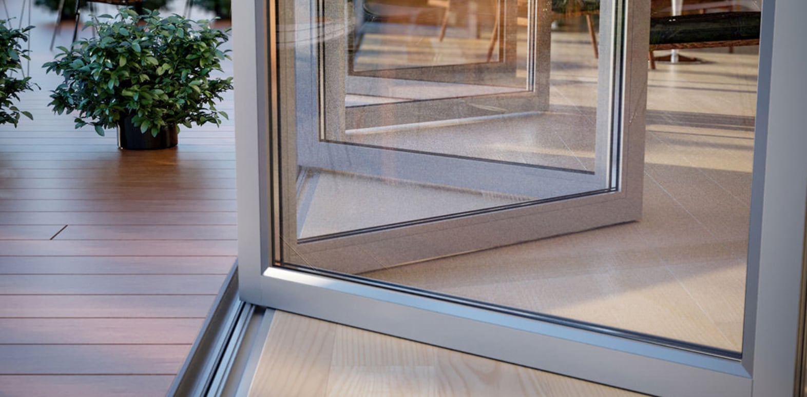 Aluminium is a strong and lightweight material that is 100% recyclable without the loss of quality. Aluminium bifold doors are usually comprised of aluminium profiles sandwiched around what is known as a polyamide thermal break – a strip of rigid insulation material.