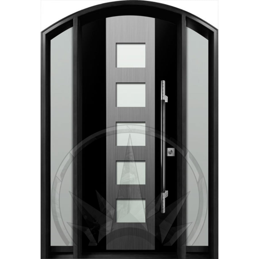 Five square door lights in this design are, in fact, a large glass insert covered by a stainless steel panel with cutouts – a great design which will fill your hallway with abundance of natural light and make a statement of style and taste.