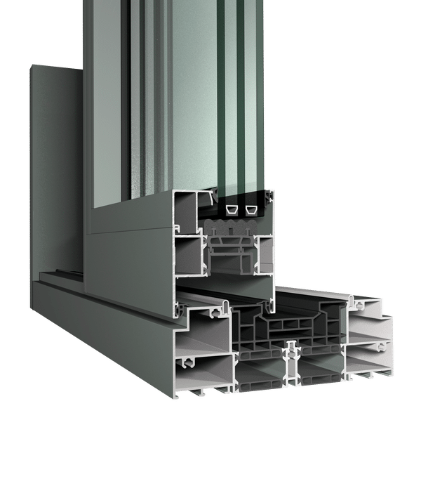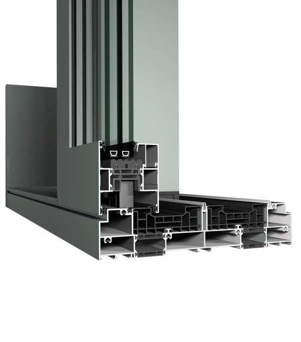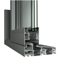 LIFT & SLIDE SYSTEM. A lift & slide system elevates the door panels before gliding them across the track, utilizing durable wheels and stainless steel rails for optimal opening comfort. When closed, the door leafs are anchored for maximum insulation, air & water tightness with a hermetical seal. This methodology eliminates brushes and other moving parts for worry-free maintenance.