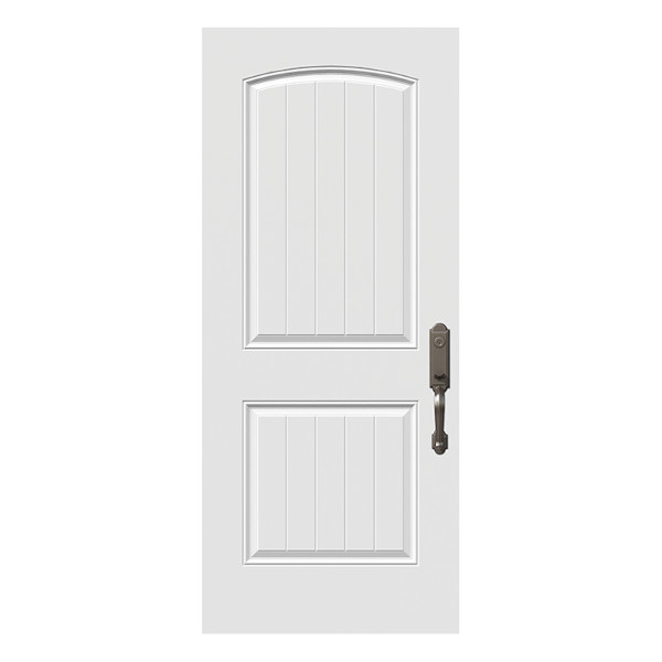 Featuring rustic-looking planks, this country-style door can be left solid or given a camber or straight top cutout.