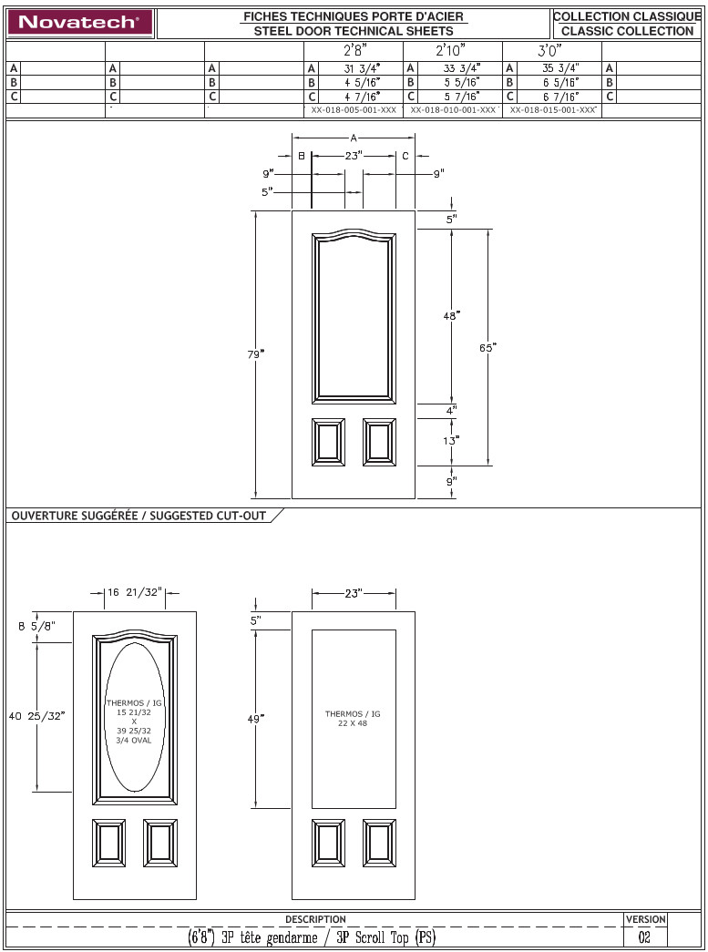 Available standard dimensions : 31 ¾", 33 ¾", 35 ¾" × 79"