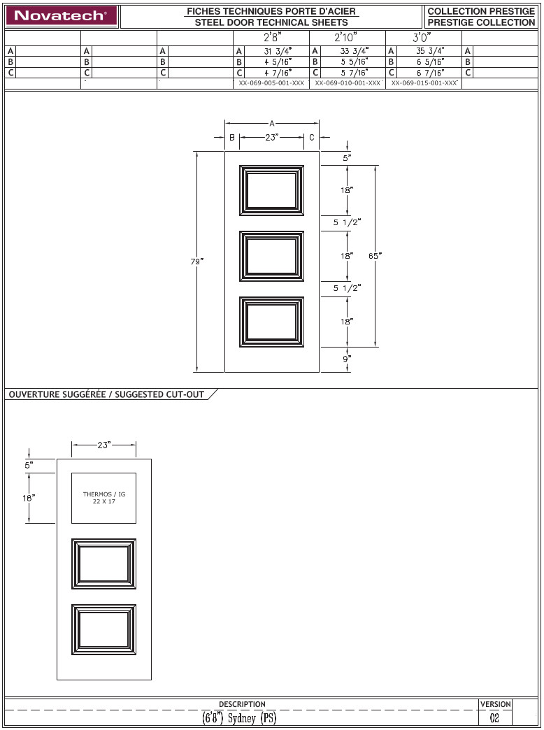 Available standard dimensions : 31 ¾", 33 ¾", 35 ¾" × 79", 31 ¾", 33 ¾", 35 ¾" × 84"