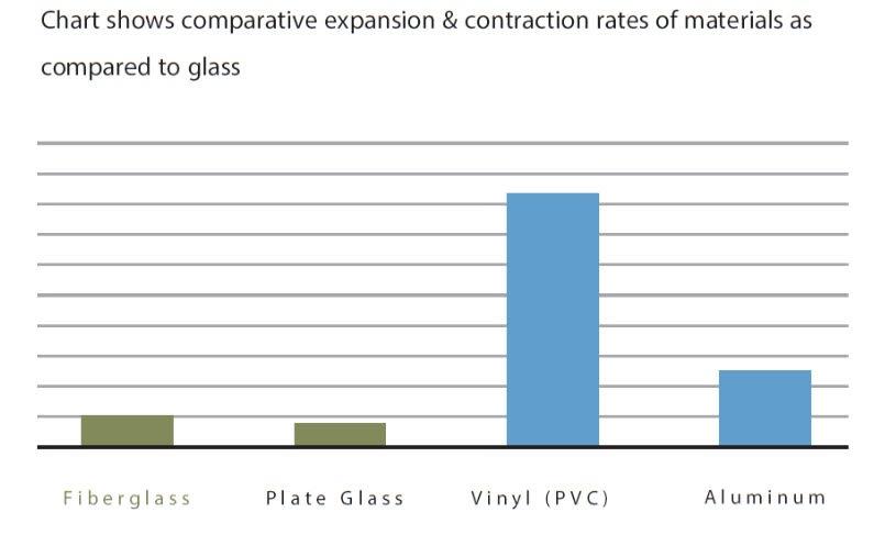 STABILITY – Fiberglass provides an extremely low rate of expansion/contraction in the face of heat or cold. It expands and contracts an incredible 800% less than vinyl.