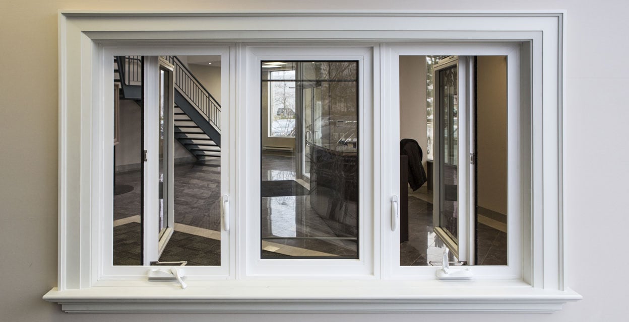 Vinyl casement windows offer a timeless design and contemporary look in one, simple package. They provide an effortless operation with an easy-to-turn handle to allow for a clean and unobstructed view. Installed on their own or paired with other windows, casement windows will complement any room.Â