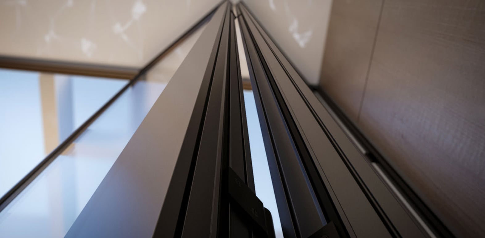 Series 1781 is a thermally broken bi-folding door top hung guided by a single track with 2-1/4" (57.158mm) stiles.