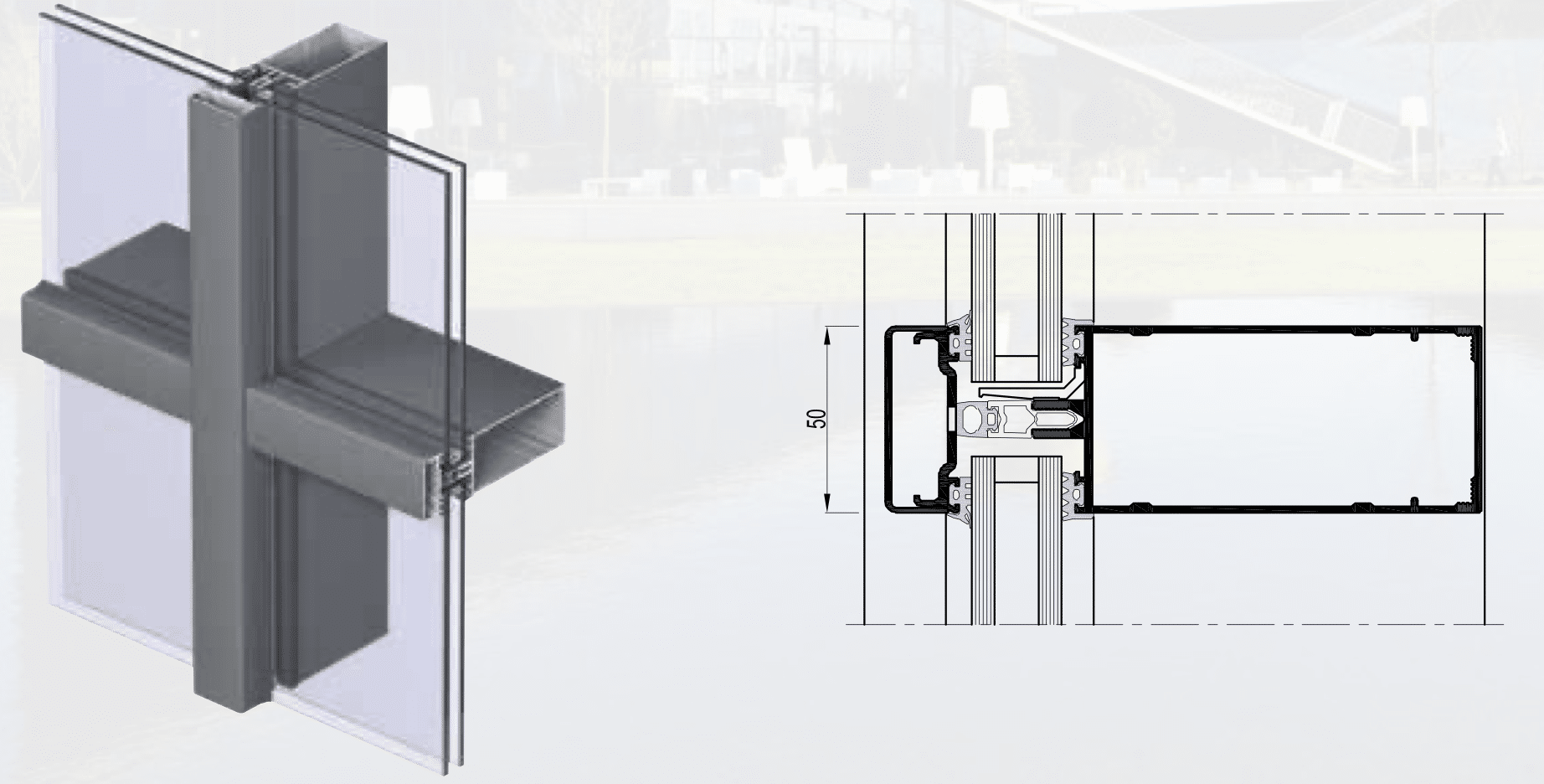 The Concept Wall 50 is a state – of – the – art roof system which seamlessly connects you to the outside world using highly advanced glass technology. The CW 50 supports up to 700kg of various glass configurations – proving flexibility in its design and cut.Â
