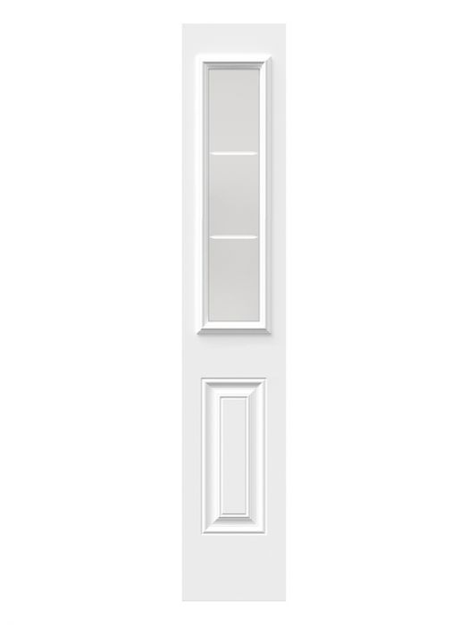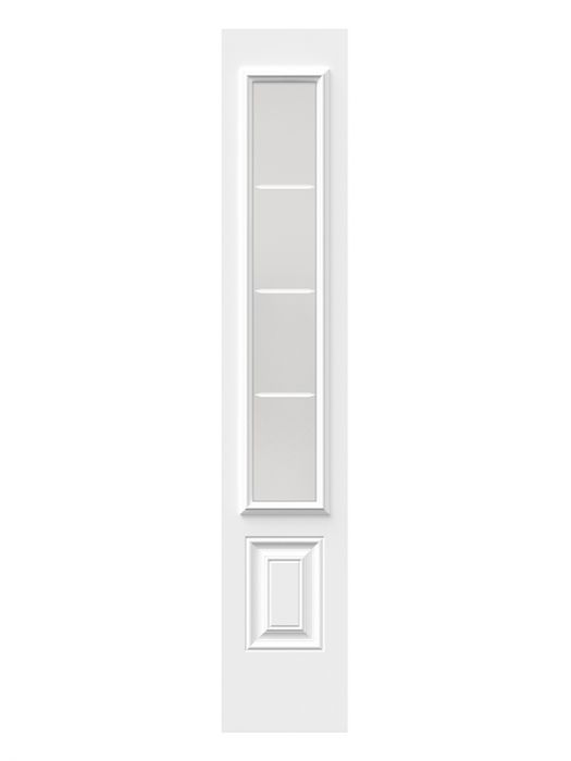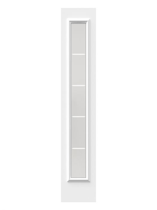 The Distinction V-Groove model is perfect for matching your doorglass to your grilled home windows. The polished V-Groove lines add a touch of brightness to the sandblasted glass creating a bright yet private entrance to your home.