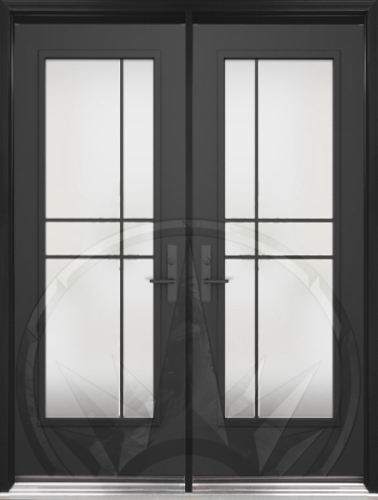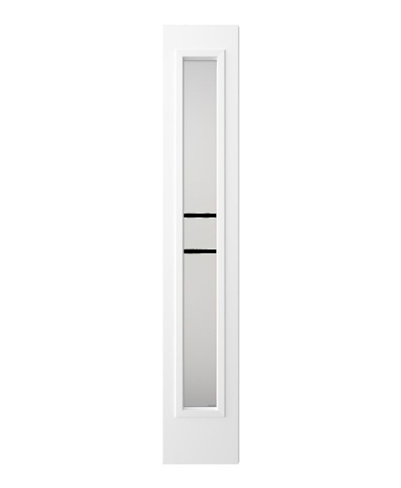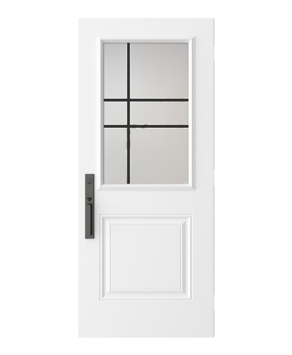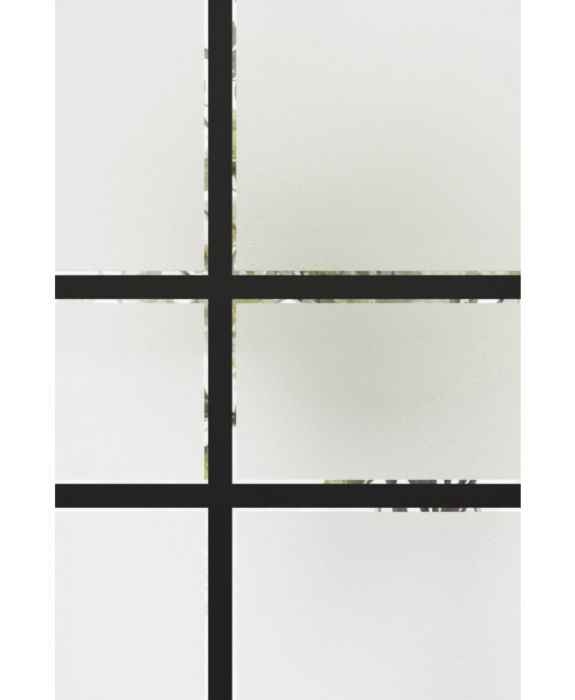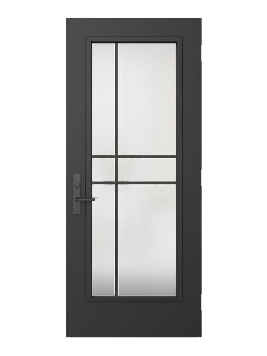 The Equation model offers the simplicity and privacy of sandblasted finish glass, crossed with black perpendicular lines. Evoking window grids and divisions in a more modern style, Equation is the perfect match for Contemporary or Farmhouse style homes. Thin, clear lines allow a view to the outside. Available in left or right versions.