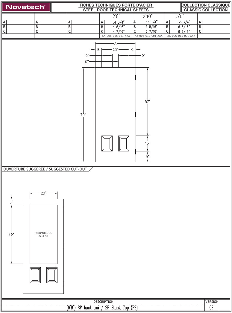 Available standard dimension : 31 ¾", 33 ¾", 35 ¾" × 79",    31 ¾", 33 ¾", 35 ¾" × 95 "