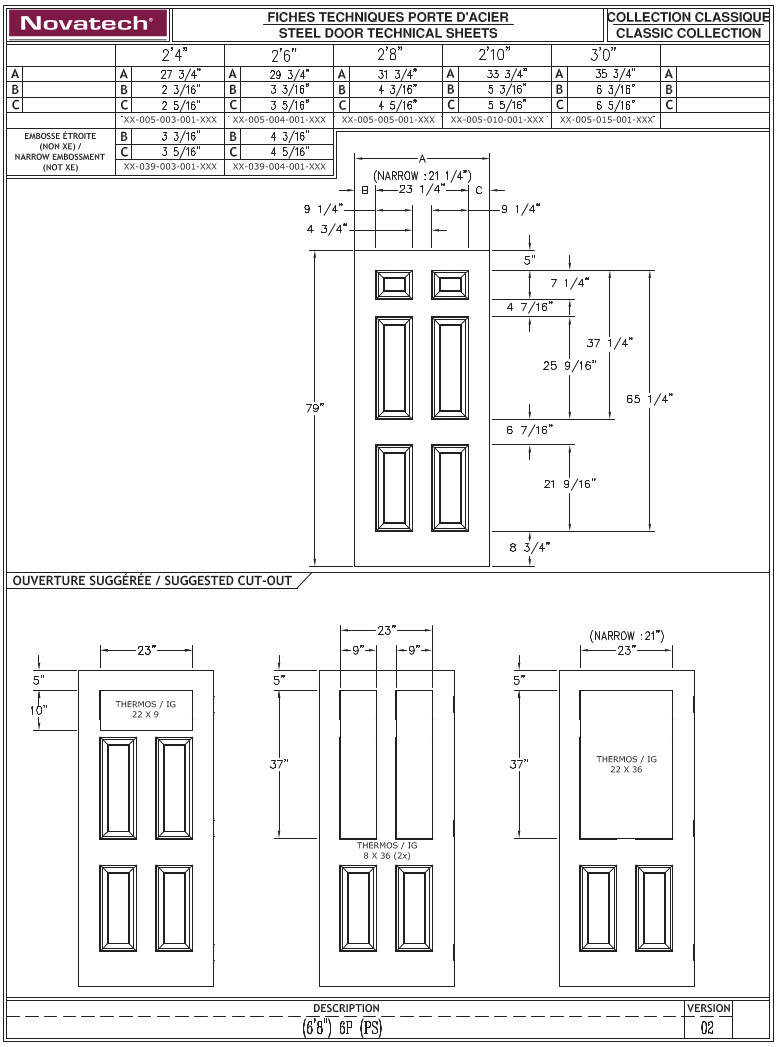 Available standard dimensions : 27 ¾, 29 ¾, 31 ¾", 33 ¾", 35 ¾" × 79",    31 ¾", 33 ¾", 35 ¾" × 84"
