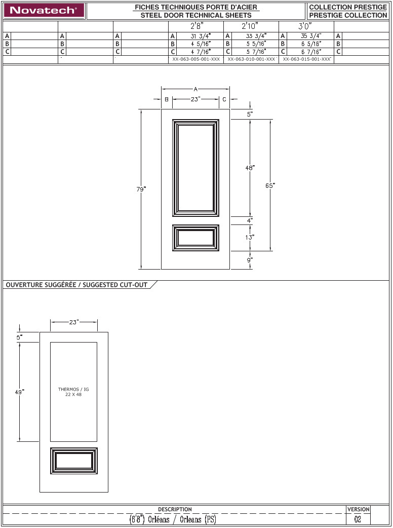 Available standard dimensions: 31 ¾", 33 ¾", 35 ¾" × 79", 31 ¾", 33 ¾", 35 ¾" × 84", 31 ¾", 33 ¾", 35 ¾" × 95"