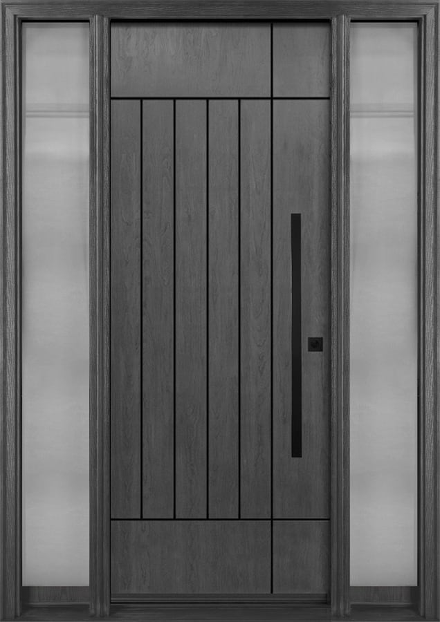 Our most popular linear design made with thin grooves has been interpreted in a wood grain or smooth version. You have to decide what else it takes to complete the look by complementing the grooved lines with locking hardware of your choice and choosing the desired stain.