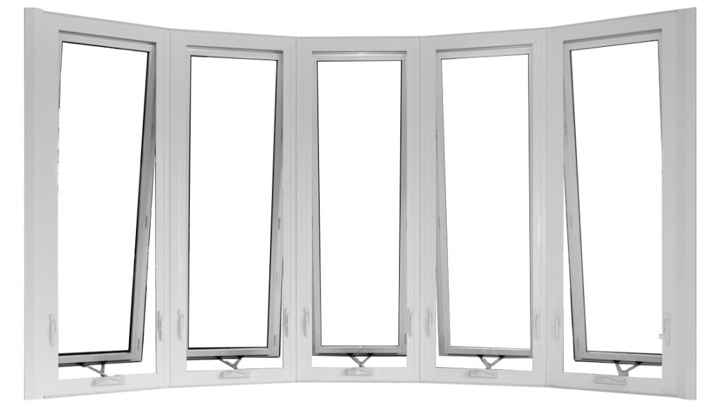 All projecting window constructions are generally called bay windows. A typical bay window consists of a fixed window in the center and casement windows joined to it from every side. A bow window usually consists of 4 or more windows forming a curve. Our bay and bow windows have reinforced frames and sashes to keep air and water out. Better insulation is provided by reinforced vinyl chambers and triple-sealed frames. For special features please refer to our Casement Windows page.