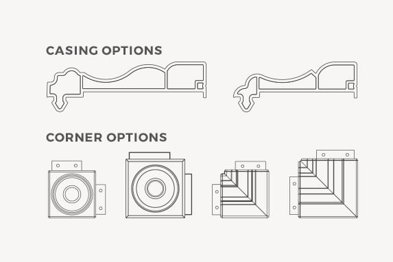 - A choice of maintenance-free PVC jamb extensions, frame moldings and corner blocks are available to enhance inside finishing.